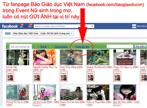 - Vào www.facebook.com/baogiaoducvn, truy nhập ứng dụng/sự kiện Nữ sinh trong mơ