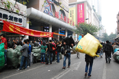 Ngày tôi lên đường khám phá "kinh đô hàng chợ" là ngày Hà Nội trở gió, trời lạnh căm căm và gió mùa đông bắc rít lên từng chập tê tái. Thế nhưng, tại Quảng Châu (Trung Quốc), giữa tiết trời lạnh giá với nền nhiệt độ luôn thấp hơn Hà Nội từ 2-3oC, chúng tôi đã phải vã mồ hôi như tắm, chật vật xoay sở để thâm nhập vào những gian hàng bé tí xíu và kin kít người của khu chợ khổng lồ có tên là "Chợ 13" (tiếng Hán: Shi shang hang).