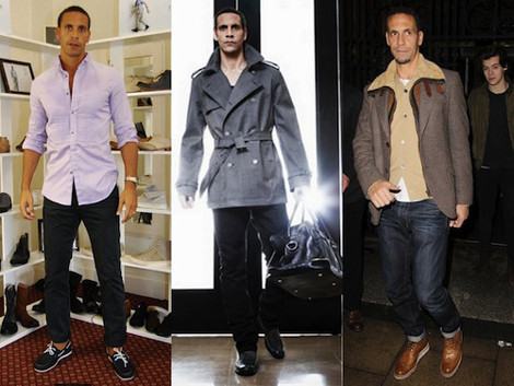 Rio Ferdinand (Anh) Trung vệ thép của Manchester United sở hữu khuôn mặt rất mạnh mẽ, nam tính và có phần hung dữ, vì thế anh rất phù hợp với phong cách ăn mặc hầm hố. Tuy nhiên, Rio lại đặc biệt yêu thích phong cách lịch lãm, cổ điển. Anh thường chọn mặc suit đen, blazer với áo thun trơn màu phối cùng khaki hoặc jeans.