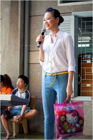 | Dương Yến Ngọc trẻ trung trong bộ trang phục skinny, áo thun dáng thụng màu sắc rất hài hòa |