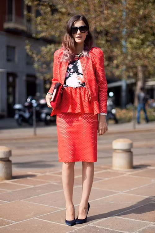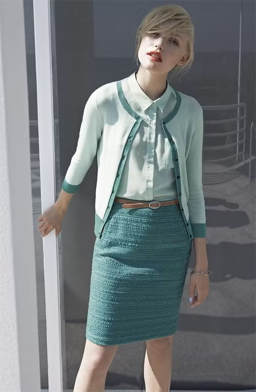 Đôi khi những bộ đồ đơn sắc với gam màu rực rỡ mang tới cảm giác quá đậm đặc. Trong trường hợp đó, để giảm cường độ chói của trang phục, người mặc có thể phối hợp với một món đồ có khối màu khác, hoặc một vài họa tiết nhấn nhá.