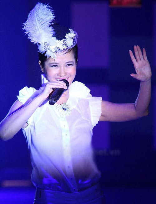 | Trong một sự kiện âm nhạc diễn ra vào tháng 7, Hồng Nhung tiếp tục khiến công chúng ngỡ ngàng vì phần trang phục "có một không hai". Cô diện trang phục hiện đại là sơ mi và quần jeans nhưng lại đi kèm mặt nạ lông vũ thiếu hòa hợp, tạo nên tổng thể rối mắt. |