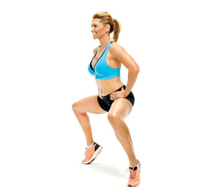 Bạn đứng với hai chân mở rộng hơn chiều rộng của vai, hai tay chống nạnh, hướng mũi bàn chân hướng ra ngoài. Hạ thấp trọng tâm cho đến khi đùi bạn ở vị trí song song với sàn nhà, sau đó nhấc cao cả hai gót chân, bạn có thể lặp đi lặp lại bằng cách nâng cao và hạ thấp chân. Phần mông, đùi, và bắp chân của bạn sẽ được hoạt động tối đa.