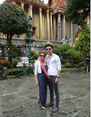 | Và sau đó, hình ảnh 'bồ già tỷ phú' cùng chiếc khăn thường xuyên đã theo Vũ Hoàng Việt đi khắp mọi nơi |