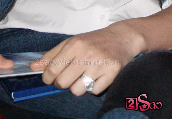 | Trong một sự kiện ra mắt album cuối tháng 09/2010, một chiếc nhẫn có gắn miếng đá quý to đã ngự trị ở trên ngón tay đeo nhẫn của người đẹp họ Hồ. |