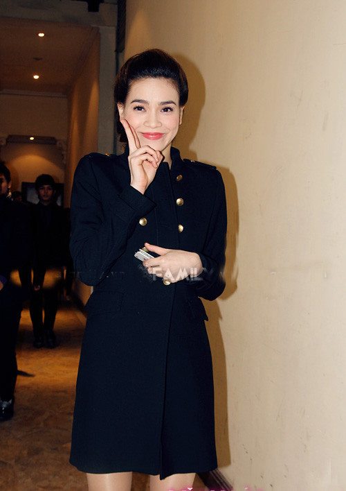 | Trong khi đó, Hồ Ngọc Hà lại rất thích kiểu áo khoác dạ dáng dài truyền thống. Nhưng cô chọn gam màu đen và xanh navy để tăng thêm nét 'tây' cho mình |