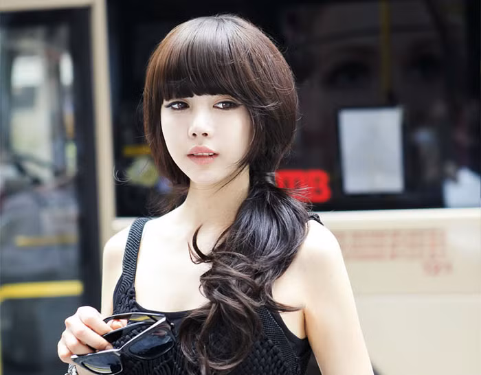 Tóc mái cúp chải thẳng mượt mà, màu tóc đen nhánh nổi bật với khuôn mặt trắng hồng càng làm tăng vẻ đẹp trẻ trung và ngây thơ của các cô gái. Với phu kiện tóc này, bạn có thể biến tấu thành nhiều kiều khác nhau như: Buộc đuôi, buộc lọn, búi cao, hoặc để xõa... đều phù hợp với mái tóc ngố.