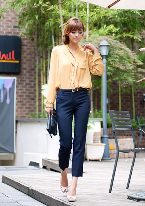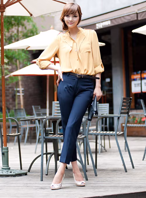 | Dù ở thời tiết nào thì quần âu cũng là người bạn luôn đồng hành cùng cô nàng công sở. Việc mix áo tay lỡ cùng quần âu trong những ngày trời se lạnh được các bạn gái lựa chọn bởi sự gọn gàng, thoải mái và thanh lịch. |