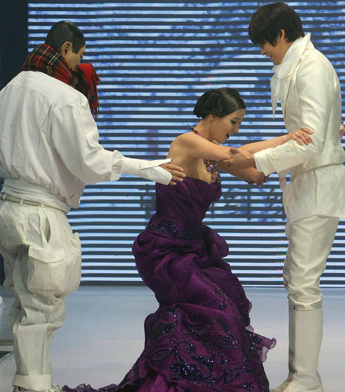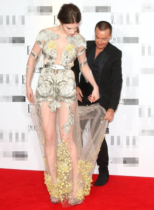 | Anh chàng quay phim do khuất tầm mắt cũng suýt làm rách váy của người đẹp |