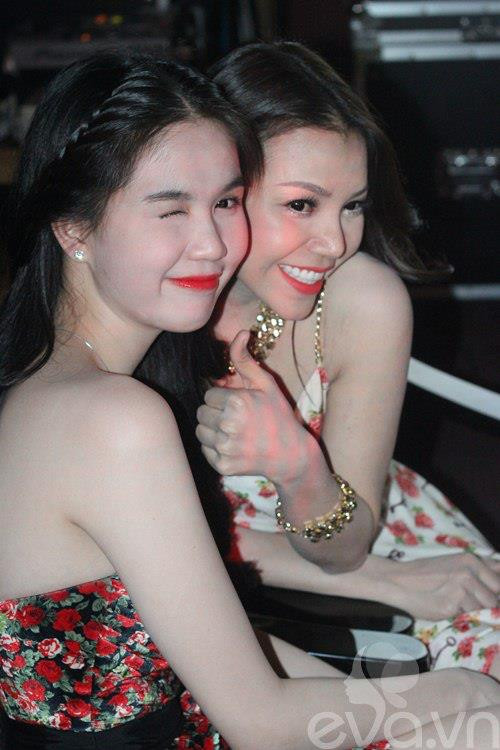 | Có vẻ như Huyền My 'ăn đứt' Ngọc Trinh về chiều cao, và trong hình ảnh này, khoảng lưng của Ngọc Trinh cũng không được nõn nà như thường thấy. |