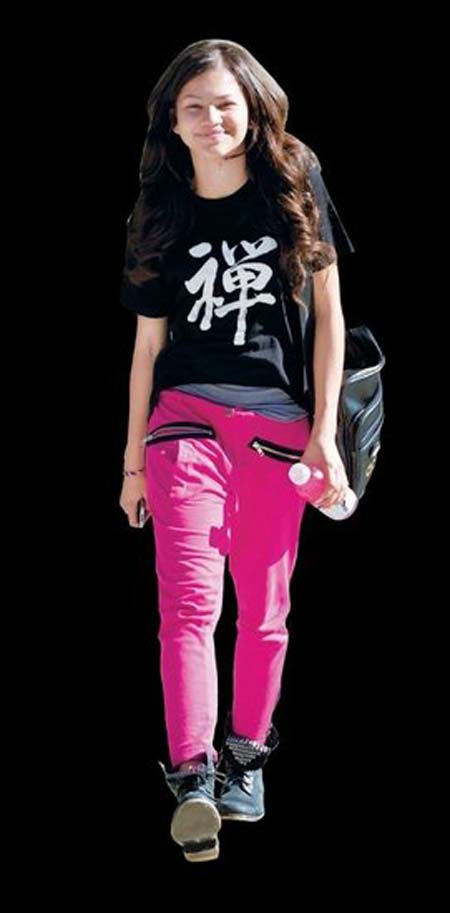 | Ngôi sao Walt Disney - Bella Thorne với quần skinny màu hồng neon |