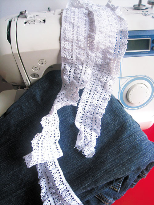 | Sau đó khâu vải ren vào hai mép quần vừa lược (H.3). |