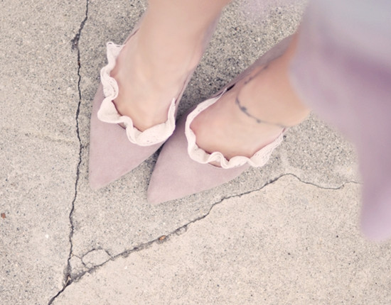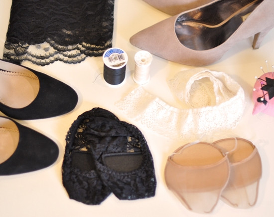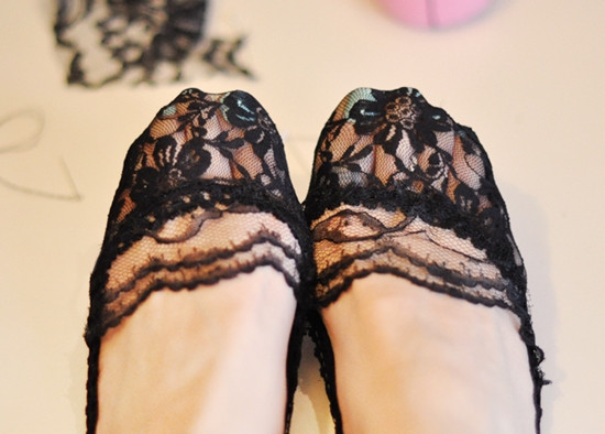 Sau đó, lấy kim may cố định. Cắt bỏ đi những phần ren dư ra. Bạn đã có một đôi tất nữ tính điệu đà, dùng để phối hợp với những đôi giày màu nude, vàng nhạt hoặc trắng kem.