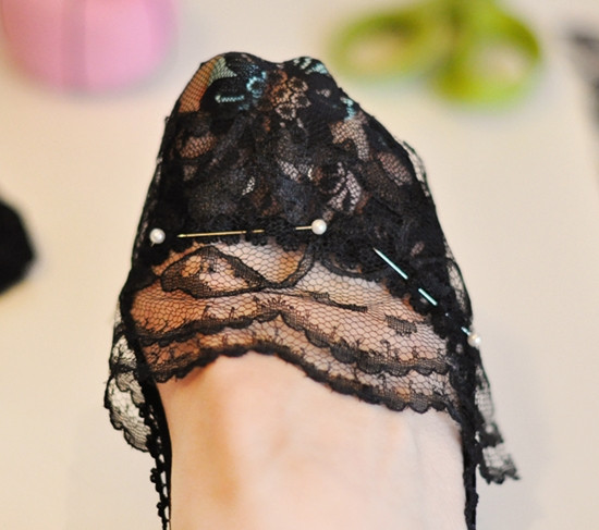 Với ren màu đen, bạn cũng làm tương tự. Lưu ý: chọn phần ren đẹp, họa tiết đơn giản.