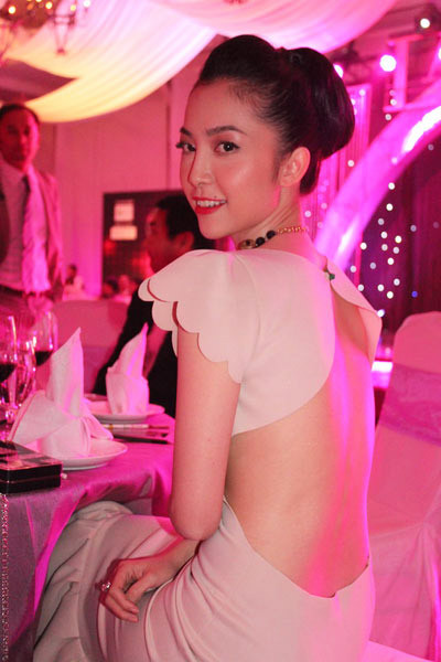 Trong sự kiện mới đây, Linh Nga xuất hiện đầy gợi cảm với chiếc váy màu nude