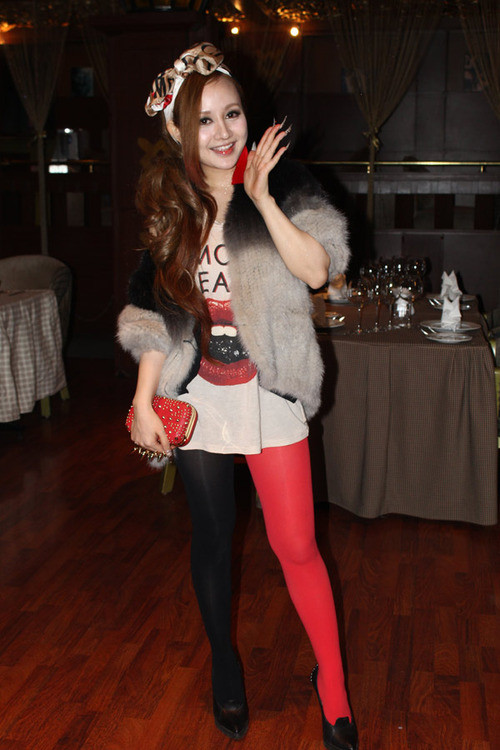 | .. mũ lông hình như chẳng liên quan gì tới trang phục của cô nàng |