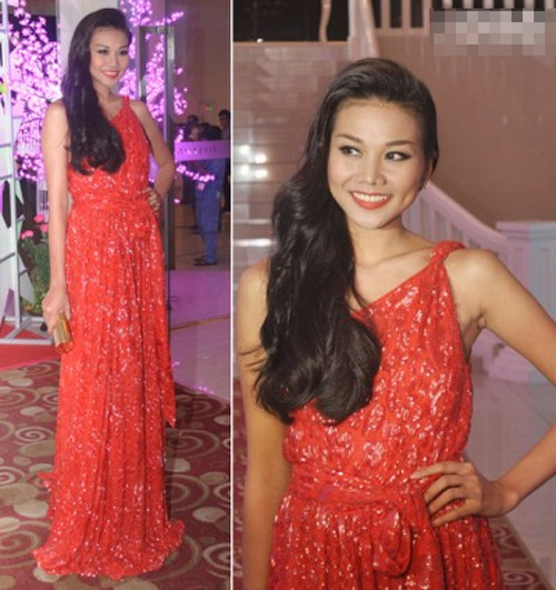 | Thanh Hằng nổi bật tại đêm tiệc với bộ váy nằm trong BST mới của Salvatore Ferragamo với mức giá khoảng 100 triệu đồng. |