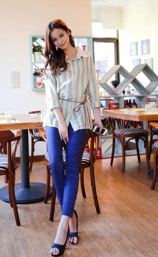 Nếu bạn muốn chiều cao của mình được cải thiện hãy mặc áo cổ V hay cổ thìa, áo sơ mi có đường chít eo trên (khoảng giữa phần ngực và bụng). Chi tiết nhấn phần eo bằng những đường chít eo hoặc gấp pli khéo léo.