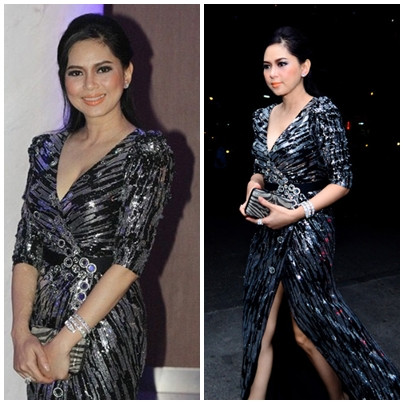 | Có vẻ như Thủy Tiên rất thích chất liệu sequeins ánh vàng hoặc bạc lấp lánh sang trọng. Bà cũng luôn biết cách mix chúng với phụ kiện đi kèm phù hợp tạo nên sự trẻ trung, tinh tế. |