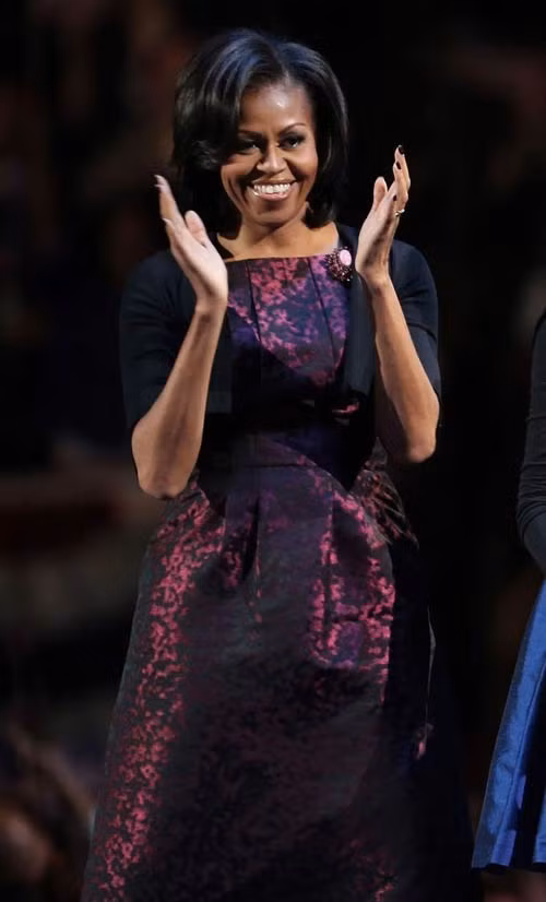 Michelle Obama xuất hiện thanh lịch và tỏa sáng trong lễ nhận chức của Barack Obama với bộ váy sequin màu đen. Thiết kế này cũng đã từng được bà mặc trong một bữa tiệc tối vào tháng 9/2009