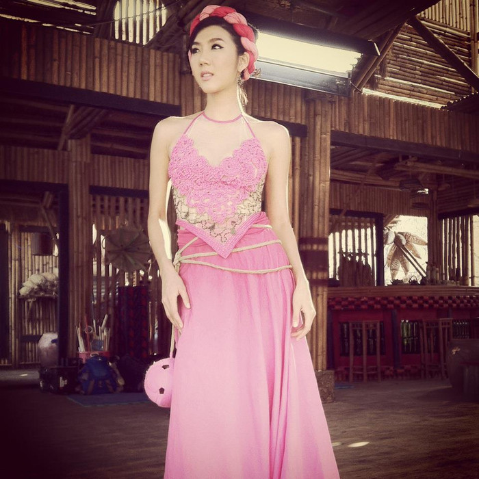 | Người mẫu Ngọc Quyên sở hữu một vóc dáng thon thả, khá thanh thoát và một chiếc cổ cao, dài. |