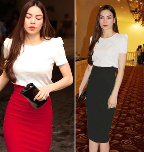 | Hồ Ngọc Hà luôn có những cách kết hợp rất đơn giản với chân váy bút chì. Trong đó các kiểu áo sơ mi trắng luôn được cô ưu tiên hàng đầu |