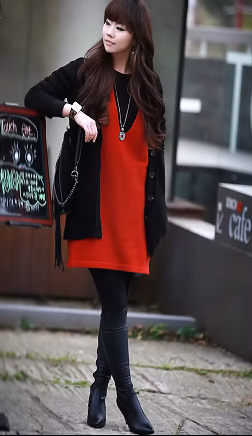 | Váy len dài + boot quả thật là một cặp đôi hoàn hảo đấy! |