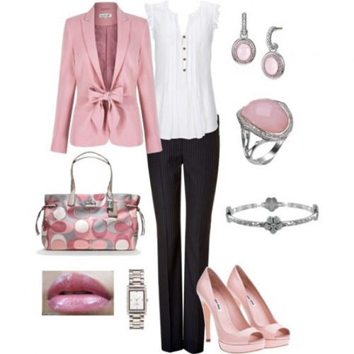 Những màu sắc hợp với gam hồng gồm có trắng, kem đen, kẻ sọc ...đều mang đến cho bạn sự trẻ trung, nữ tính lại thanh lịch, rất phù hợp với môi trường công sở.