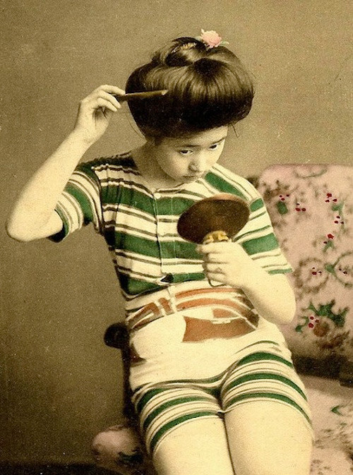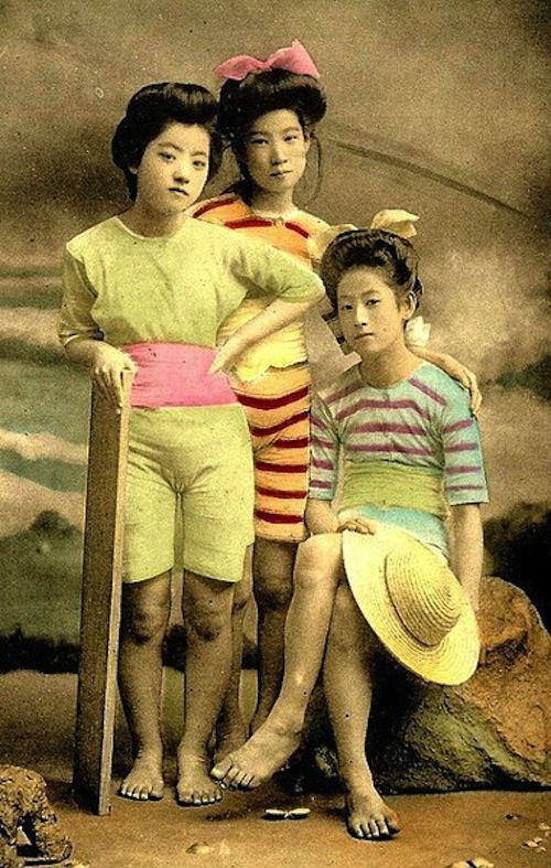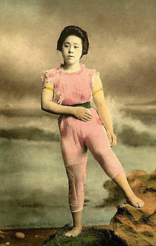 Các bức ảnh từ năm 1828 cho thấy hình ảnh kỹ nữ Nhật Bản đã sớm "cởi mở" và quyến rũ làm dáng trong những chiếc áo tắm.