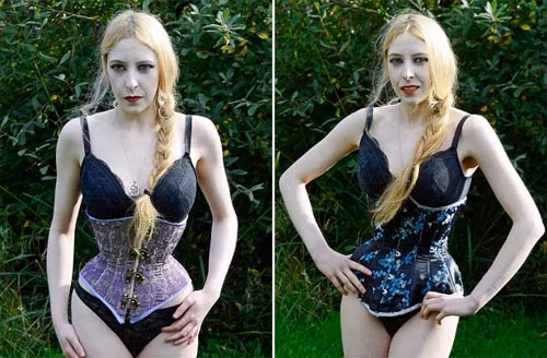 Nerina Orton mặc áo chẽn corset từ năm cô 14 tuổi và hiện tại với công việc part time là một vũ công thoát y, cô đang cố gắng để ép vòng eo của mình xuống còn 35cm. Cũng vì thế mà hiện tại cô sinh viên 22 tuổi này đang sở hữu 78 chiếc áo chẽn với tổng giá trị 15 bảng Anh ( khoảng 480 triệu). Nerina chia sẻ: 'Mặc áo chẽn ngực giúp tôi cảm thấy mình nữ tính hơn và đó là một bí kíp rất hữu hiệu để các bạn gái giảm vòng 2 đấy'.