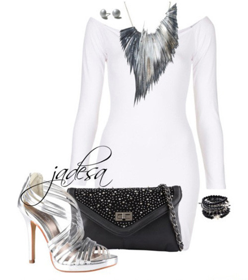Sao kết hợp trắng cả cây có điểm nhấn và ấn tượng hơn với thắt lưng ánh kim.