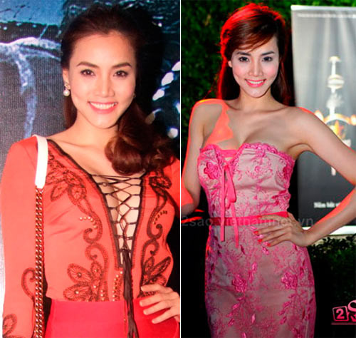 | 2. Trang Nhung Nổi danh từ sự cố lộ ngực hồi năm 2010, vòng 1 cũng là ưu thế giúp Trang Nhung tạo được sự thu hút tại mỗi sự kiện. Trang phục 'ruột' của Trang Nhung là những bộ váy áo khoét sâu chữ V, để lộ vòng 1 căng tròn. Cộng thêm phong cách diêm dúa, thậm chí là sến sẩm, gu thời trang của 'người đẹp lộ ngực' chưa bao giờ được đánh giá cao mặc dù cô có một gương mặt đẹp và một cơ thể hoàn hảo. |