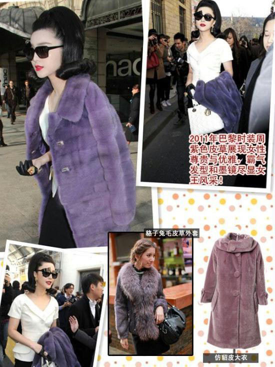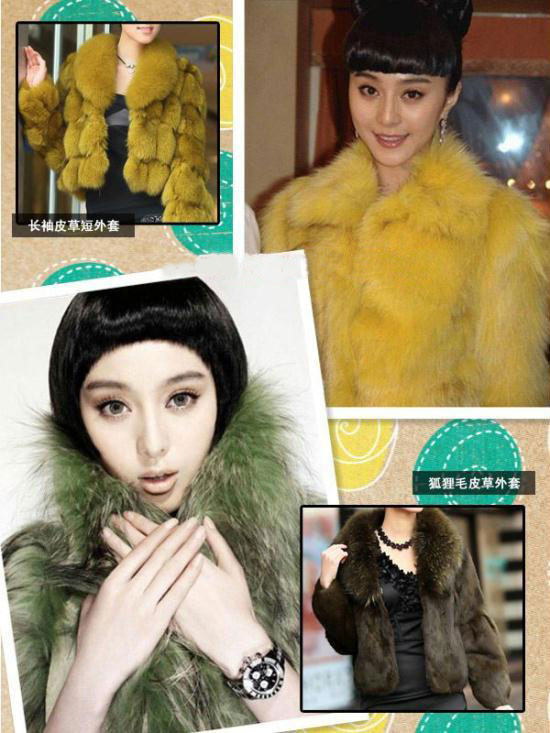 | Trong chuỗi những kiểu mốt và phong cách mà Phạm Băng Băng theo đuổi, cô đặc biệt được biết đến với những thiết kế áo lông thú sang trọng và đắt đỏ. Tính đến nay, người đẹp với biệt danh "nữ hoàng thị phi" của showbiz Hoa ngữ thực xứng đáng có thêm nickname "đại gia áo lông" khi cô đang sở hữu cả một BST áo lông rất hoành tráng và tuyệt đẹp. |