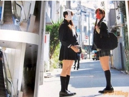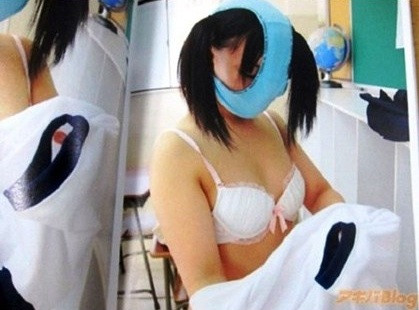 | Nữ sinh Nhật Bản trong bộ đồng phục đáng yêu và .. đôi quần lót trên đầu |