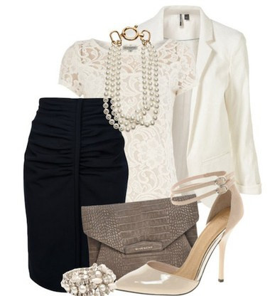 Đây có lẽ kiểu mix ren và blazer được nhiều cô nàng công sở ưu chuộng nhất. Bởi nó đơn giản, và cũng thật hiệu quả. Sự kết hợp giữa những sắc màu cơ bản đem đến cho bạn gái sự thanh lịch, sang trọng cần thiết của không gian văn phòng.