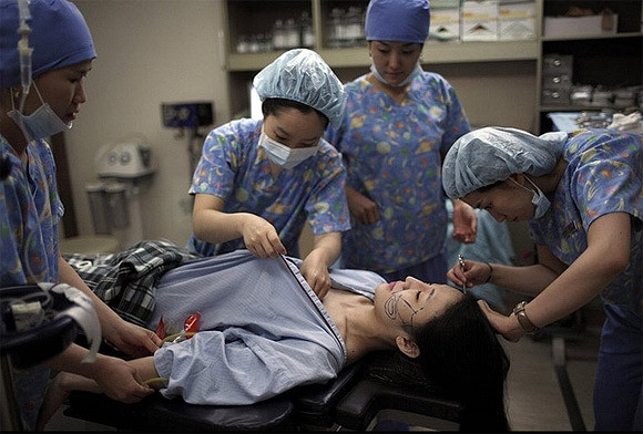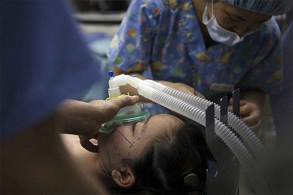 | Bức ảnh thể hiện rõ sự đau đớn và sợ hãi của cô gái khi trải qua cuộc trùng tu nhan sắc |
