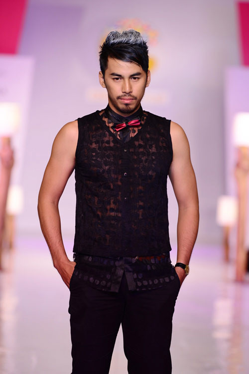 | Dàn mẫu nam trình diễn BST xuyên thấu trên sàn catwalk tuần lễ thời trang thu đông vừa diễn ra tại TP. HCM |
