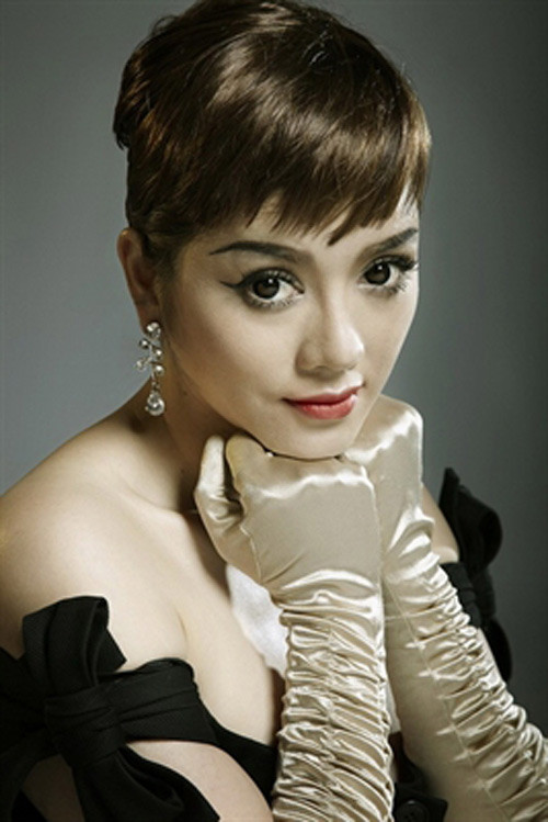 | Đinh Ngọc Diệp thậm chí còn nhợt nhạt hơn với lens màu nâu nhạt |