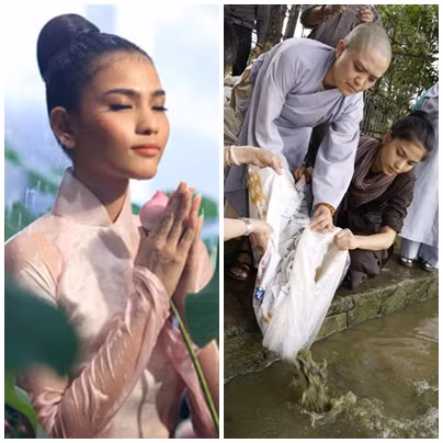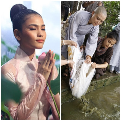 | Hồ Ngọc Hà an nhiên trong tà áo dài điểm sen tuyệt đẹp dâng hương cõi Phật |