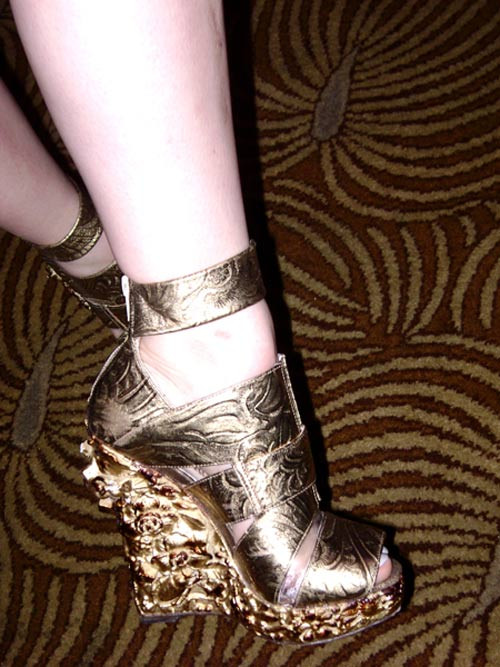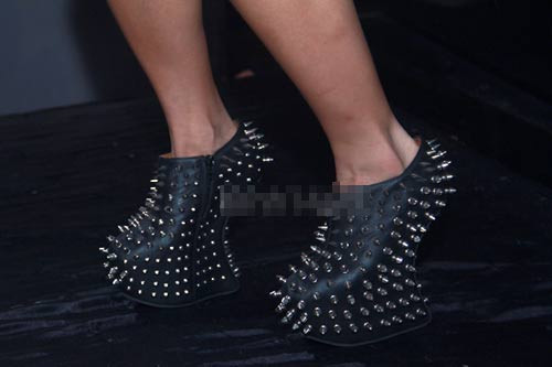 | Lý Nhã Kỳ với mốt giày móng ngựa, được kính kim sa rất bắt mắt |