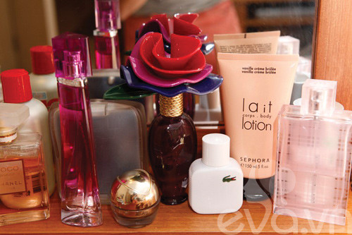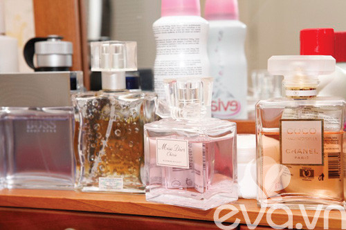| Bàn trang điểm của Thanh Trúc, nước hoa là vật dụng không thể thiếu |