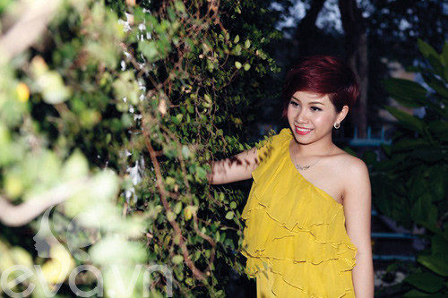 | Thanh Trúc nổi bật với tông màu vàng, chi tiết bèo nhún góp phần nữ tính và tăng độ sang trọng. |