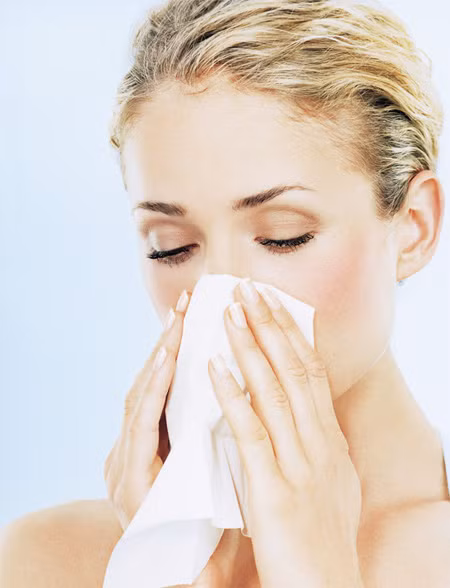 Sau nhiều lần xì mũi và lau chùi bằng khăn giấy, da mũi thường bị đỏ và khô đi nhiều. Vì vậy, thoa một chút kem dưỡng ẩm lên da mũi để khắc phục điều này và không làm rát da.