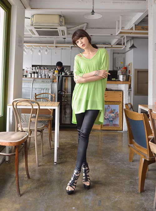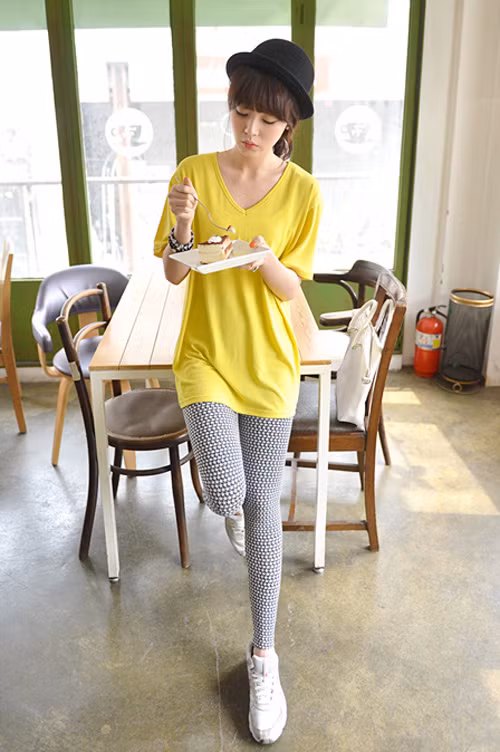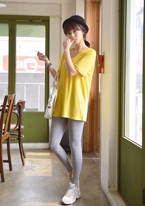 Với áo phông dáng rộng bạn nên chọn dáng quần đi cùng là skinny, legging hay jeans để tạo nên phong cách khỏe khoắn và năng động. Bên cạnh đó, bạn cũng có thể mix cùng short, sơ vin phần thân áo trên khoe chân dài miên man, gợi cảm.