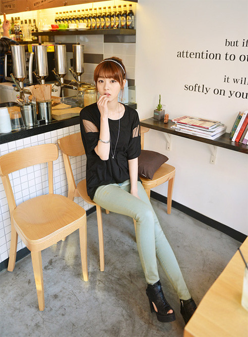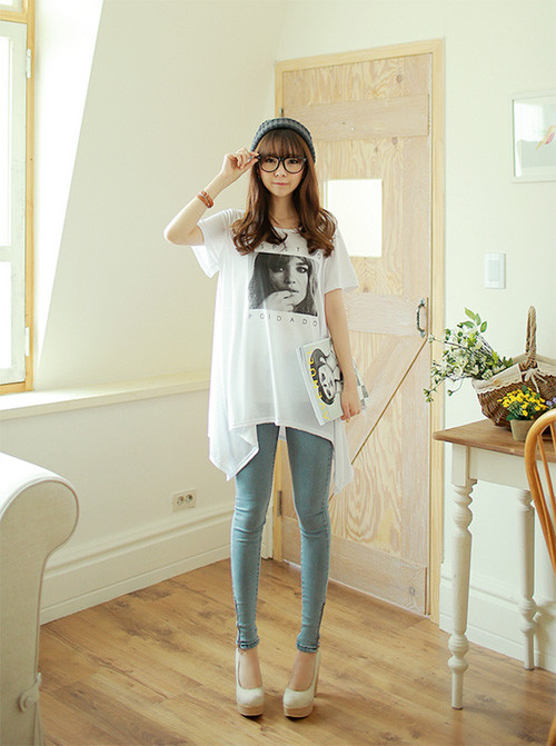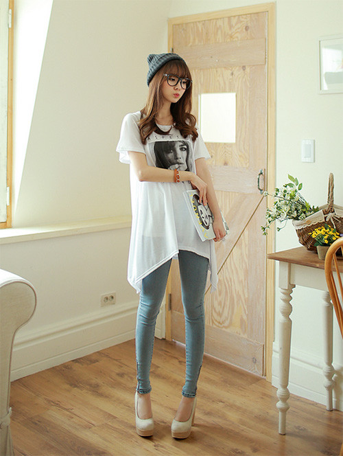 | Muốn gọn gàng và thời trang với áo dáng rộng bạn nên kết hợp cùng quần skinny vừa năng động, trẻ trung lại khỏe khoắn. |