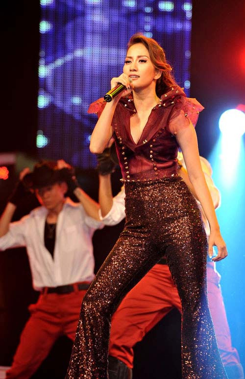 | Phong cách của Minh Hằng lột xác đầy táo bạo trong năm nay. Cô ca sĩ dễ thương, ngọt ngào ngày nào giờ đây đã thay bằng một Minh Hằng sexy và bốc lửa trên sân khấu. |