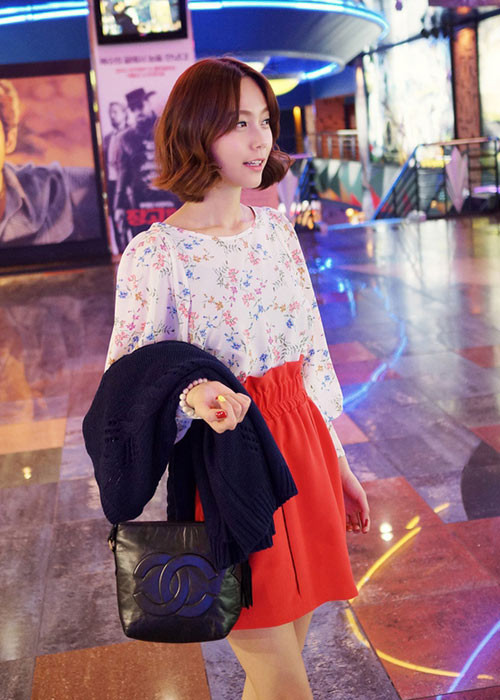 Áo sơ mi hoa và chân váy hoa là gợi ý cho những bạn gái ngại chơi cả cây hoa. Những item này rất dễ kết hợp, nhẹ nhàng mà vẫn rất quyến rũ nhé