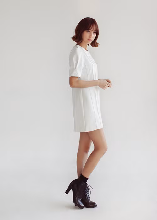 | Váy suông với độ dài vừa phải sẽ giúp bạn ăn gian được kha khá chiều cao, đặc biệt phù hợp với những cô nàng có vóc dáng nhỏ bé |