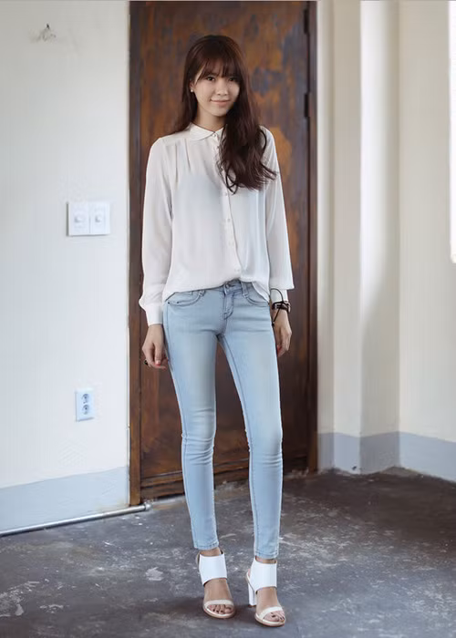 Áo sơ mi big size màu trắng là sự lựa chọn đơn giản nhưng thông minh của mọi cô gái, dù thân hình họ có chuẩn như người mẫu hay không