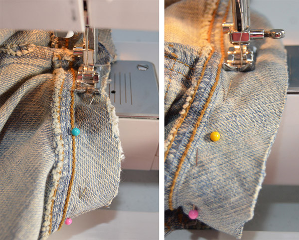 Bước 3: Dùng máy khâu để nối hai phần lại với nhau. Bạn nên may sát với phần đường chỉ khâu của áodenim để phần nối không bị lộ rõ.